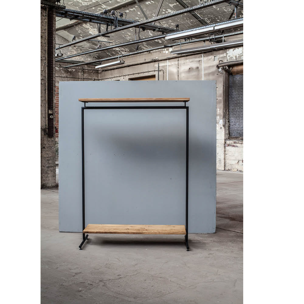 Mit seinem robusten Stahlrahmen und den massiven Kiefernholz-Ablagen ist er nicht nur optisch ein Blickfang, sondern auch extrem langlebig und stabil. Erhältlich in zwei edlen Ausführungen – dunkler Naturstahl oder Reinweiss – fügt er sich in jedes Raumkonzept harmonisch ein. Wähle aus drei Breiten: 1,20m, 1,40m oder die extra breite Variante, um den Ständer an deinen individuellen Anforderungen anzupassen. Für zusätzliche Flexibilität kann der Kleiderständer auch mit Rollen ausgestattet werden, sodass er leicht bewegt werden kann. Konfiguriere und bestelle jetzt um zu erleben, wie dieser Kleiderständer Ordnung und Stil auf elegante Weise vereint.