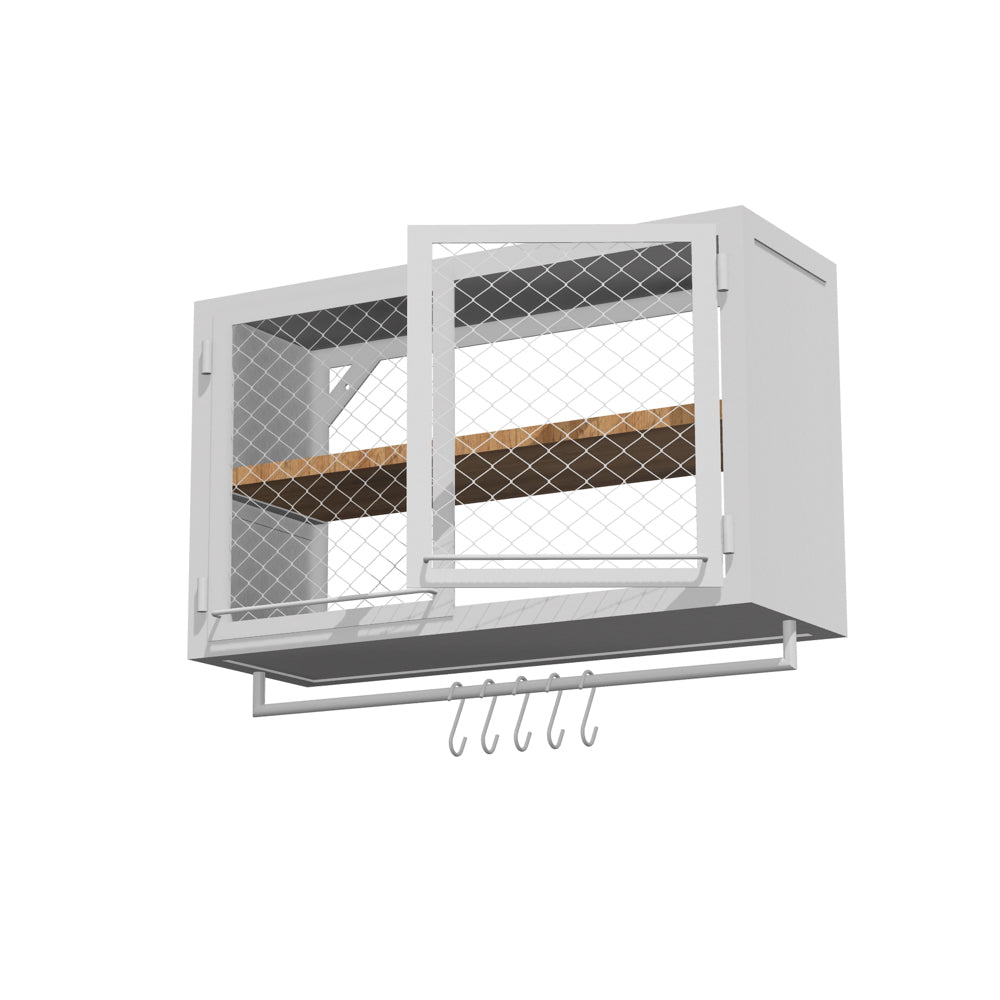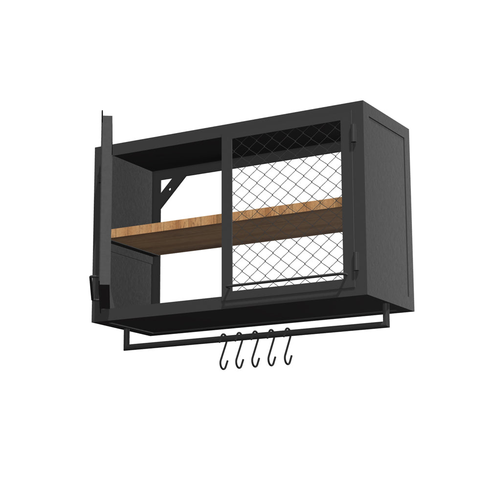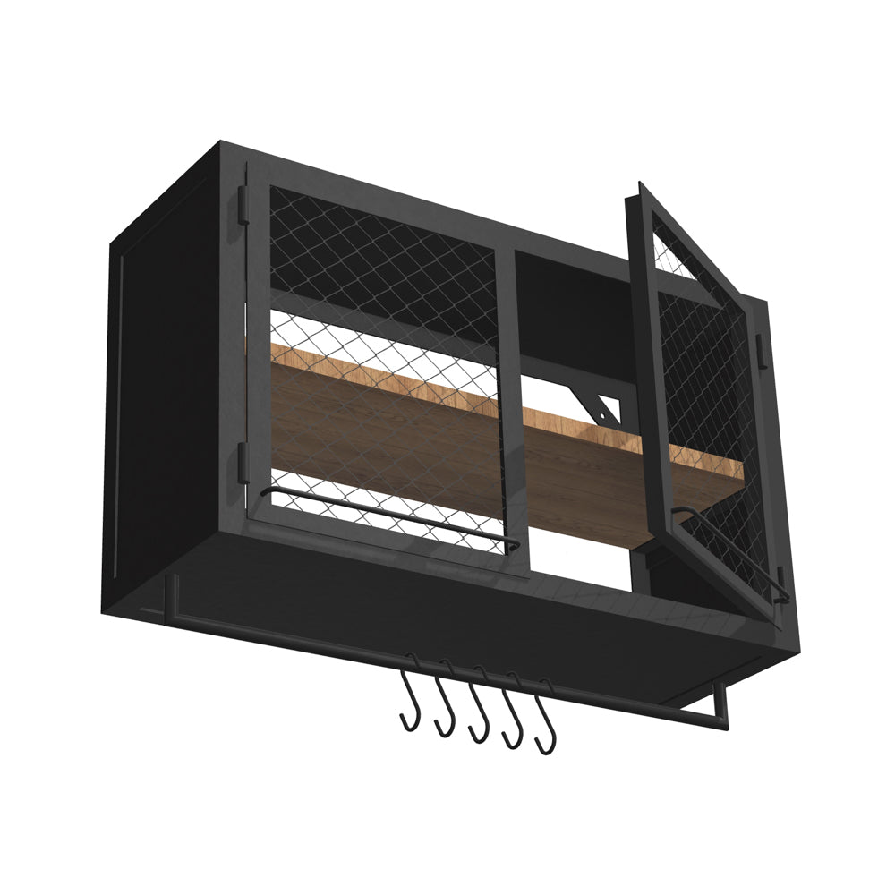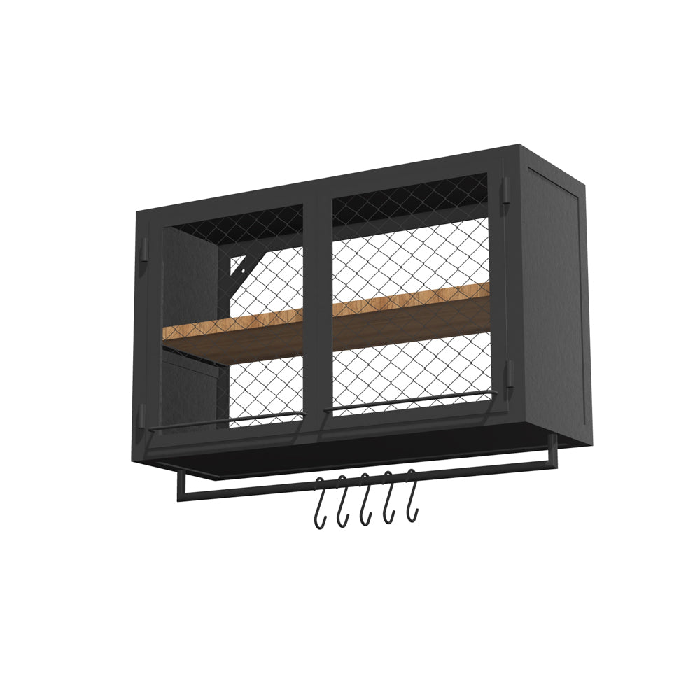 KÜCHENWANDSCHRANK PX MESH 100/60 MIT STANGE – von Noodles Noodles. Solider Wandschrank aus Stahlwinkeln, Nieten und Stahlblech. Doppeltürig. Innen sehr geräumig und mit einer Holzablage auf mittlerer Höhe ausgestattet. Gefertigt aus dunklem Stahl mit typischer Zunderschicht und transparenter Versiegelung. Alternativ mit seidenmatter Lackierung in Reinweiss. Die Lackoberfläche ist robust und pflegeleicht. Der Küchenwandschrank kann in eine Küchenzeile integriert werden oder auch alleine stehen. Flexibel in der hauseigenen Küche, Coworking Spaces, Büro Kaffeeküche, Gastronomie etc. einsetzbar.