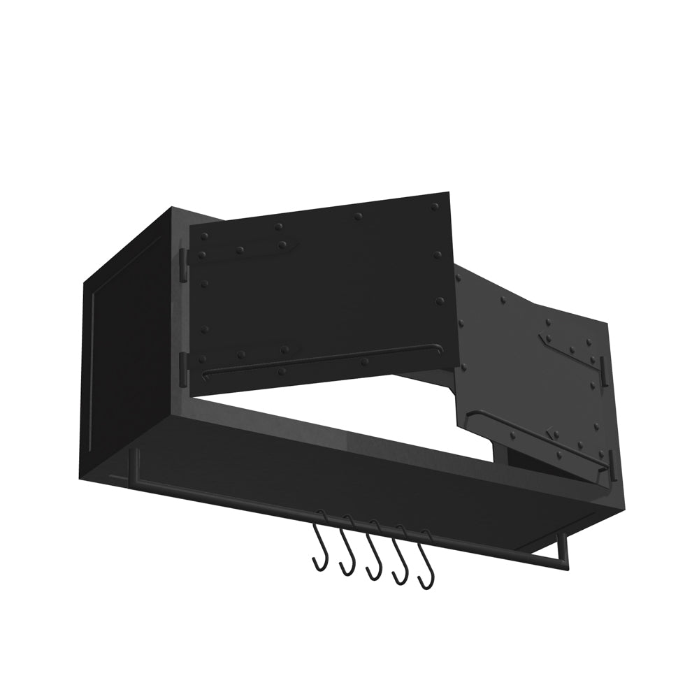 KÜCHENWANDSCHRANK PX STEEL 100/40 MIT STANGE – von Noodles Noodles. Solider Wandschrank aus Stahlwinkeln, Nieten und Stahlblech. Doppeltürig. Innen sehr geräumig und mit einer Holzablage auf mittlerer Höhe ausgestattet. Gefertigt aus dunklem Stahl mit typischer Zunderschicht und transparenter Versiegelung. Alternativ mit seidenmatter Lackierung in Reinweiss. Die Lackoberfläche ist robust und pflegeleicht. Der Küchenwandschrank kann in eine Küchenzeile integriert werden oder auch alleine stehen. Flexibel in der hauseigenen Küche, Coworking Spaces, Büro Kaffeeküche, Gastronomie etc. einsetzbar.