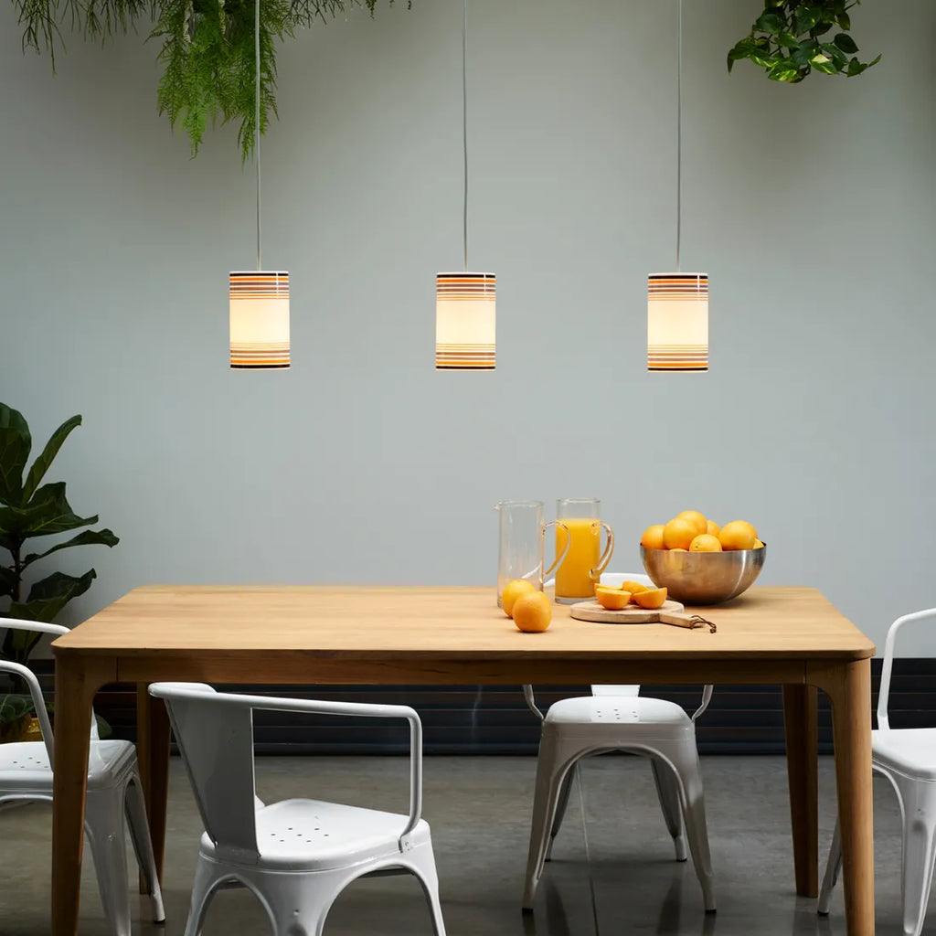 MAY SUSPENSION 2 / HÄNGELEUCHTE – PASST ÜBERALL HIN – Aufgrund ihres Designs und ihrer eleganten Schlichtheit wird die Pendelleuchte MAY in vielen Innenräumen ihren Platz finden. Die handgemalten Linien verleihen dieser klassisch geformten Pendelleuchte einen Hauch von Frische. Erhältlich in zwei Farben und zwei Grössen, alle an einem geflochtenen Textilkabel aufgehängt.