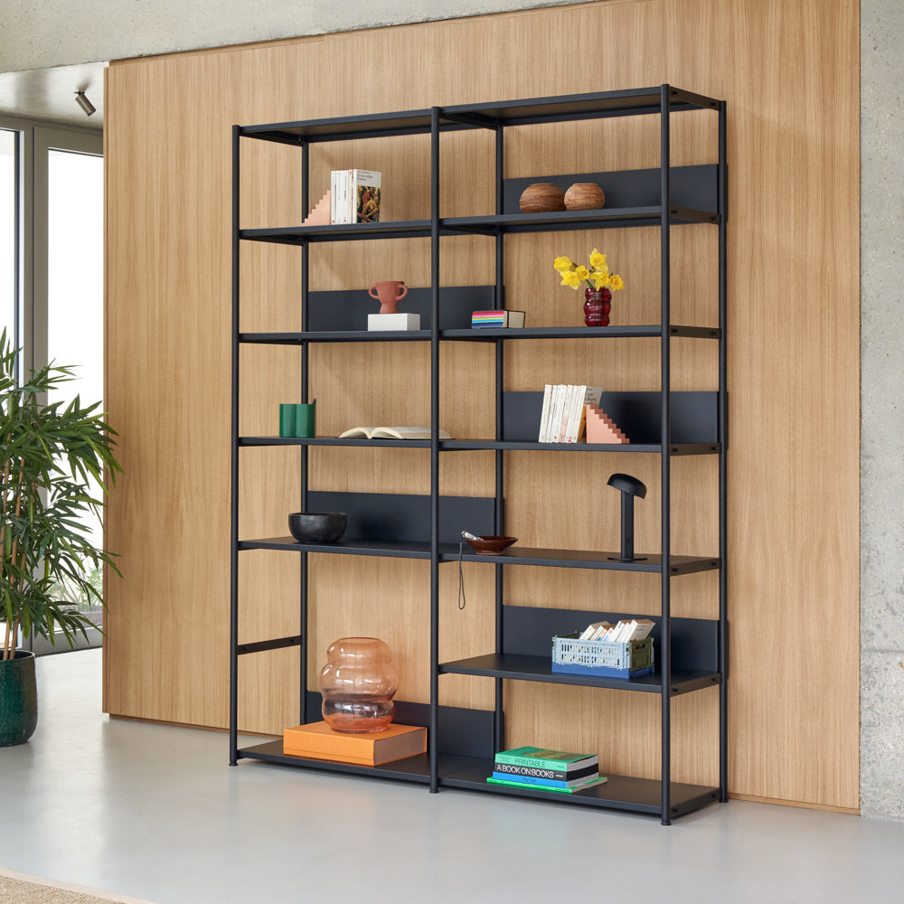 UNIT SHELF 6/2 – REGAL 215 / 2 REIHEN VON TIPTOEDas UNIT Aufbewahrungssystem zeichnet sich durch ein elegantes und funktionales Design aus. Seine Stahlrahmen und Stahltablare bilden die Grundlage für eine intuitive, sichtbare Konstruktion. UNIT ist ein modulares und langlebiges Regalsystem.