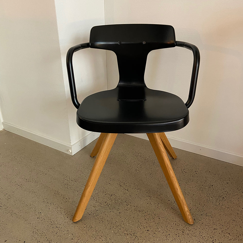 TOLIX STUHL T14 HOLZ (EINZELSTÜCK) – (Chaise T14 Métal / Chair T14 Steel) - Der TOLIX T14 Armlehnstuhl Holzgestell beeindruckt mit einer eleganten Linienführung und ergonomisch gestützter Bequemlichkeit. Er besteht aus Edelstahl und Holz. Der Stuhl hat eine Höhe von 76 cm, eine Breite von 56 cm und eine Tiefe von 49 cm. Sehr interessant sind die schräg nach außen weisenden Stuhlbeine, die eine zusätzliche Stabilität verleihen.