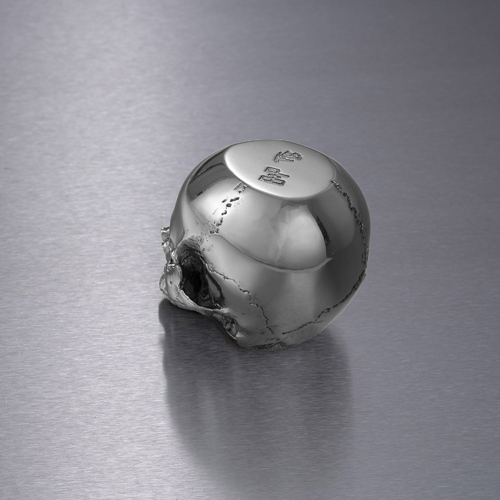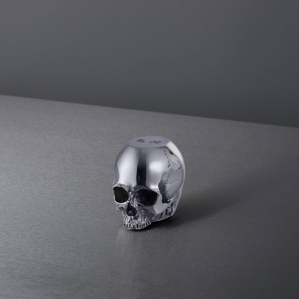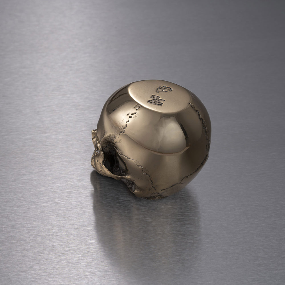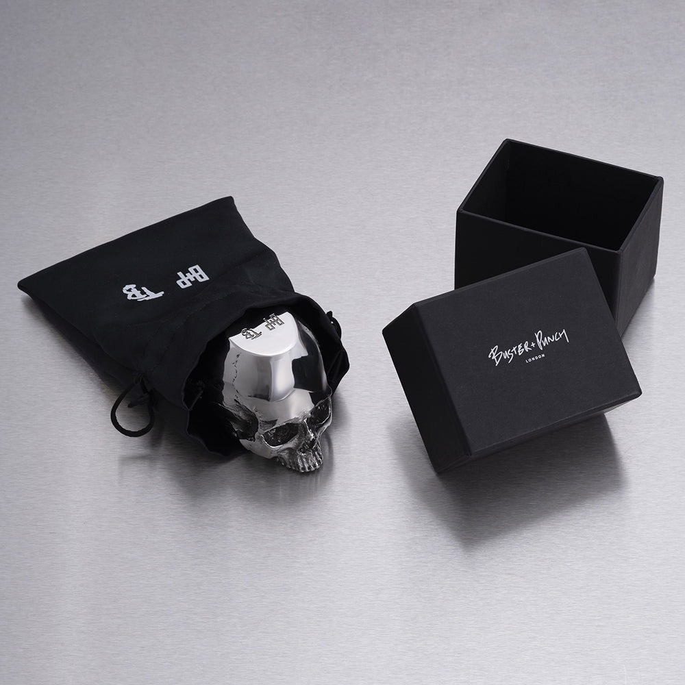 TÜRSTOPPER TRAVIS BARKER – SKULL DOOR STOP VON BUSTER & PUNCH – Ein freistehender Türstopper aus massivem Gussmetall mit Messing-EPL-Finish, poliert und von Hand veredelt. Es ist mit eingeprägten B+P- und TB-Insignien versehen und wird in einer schwarzen Seidentasche und einer Geschenkbox geliefert. Aufgrund der Art des Gussprozesses gleicht kein Stück dem anderen. Ein Travis Barker-Kollaborationsprodukt.