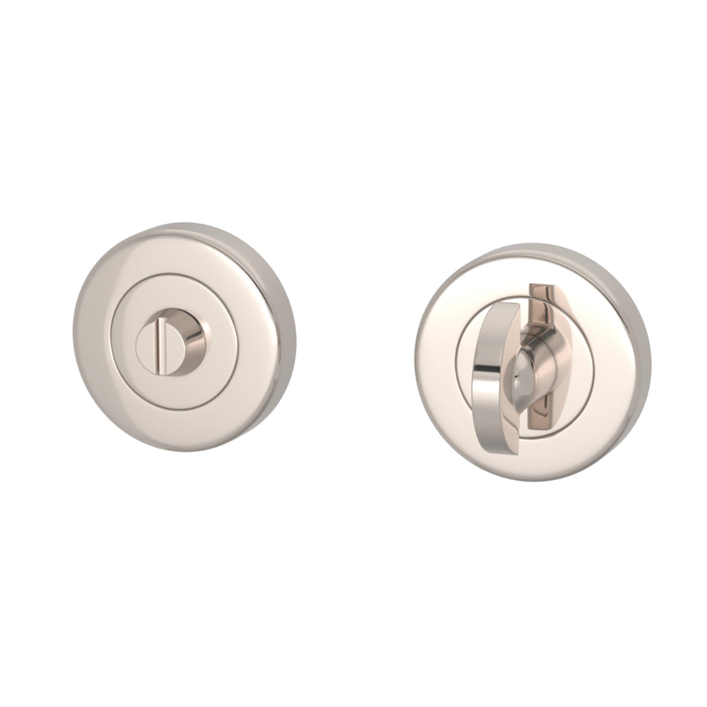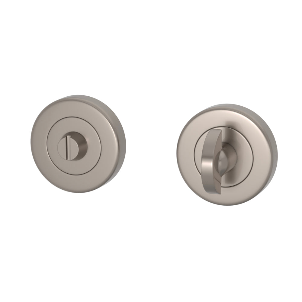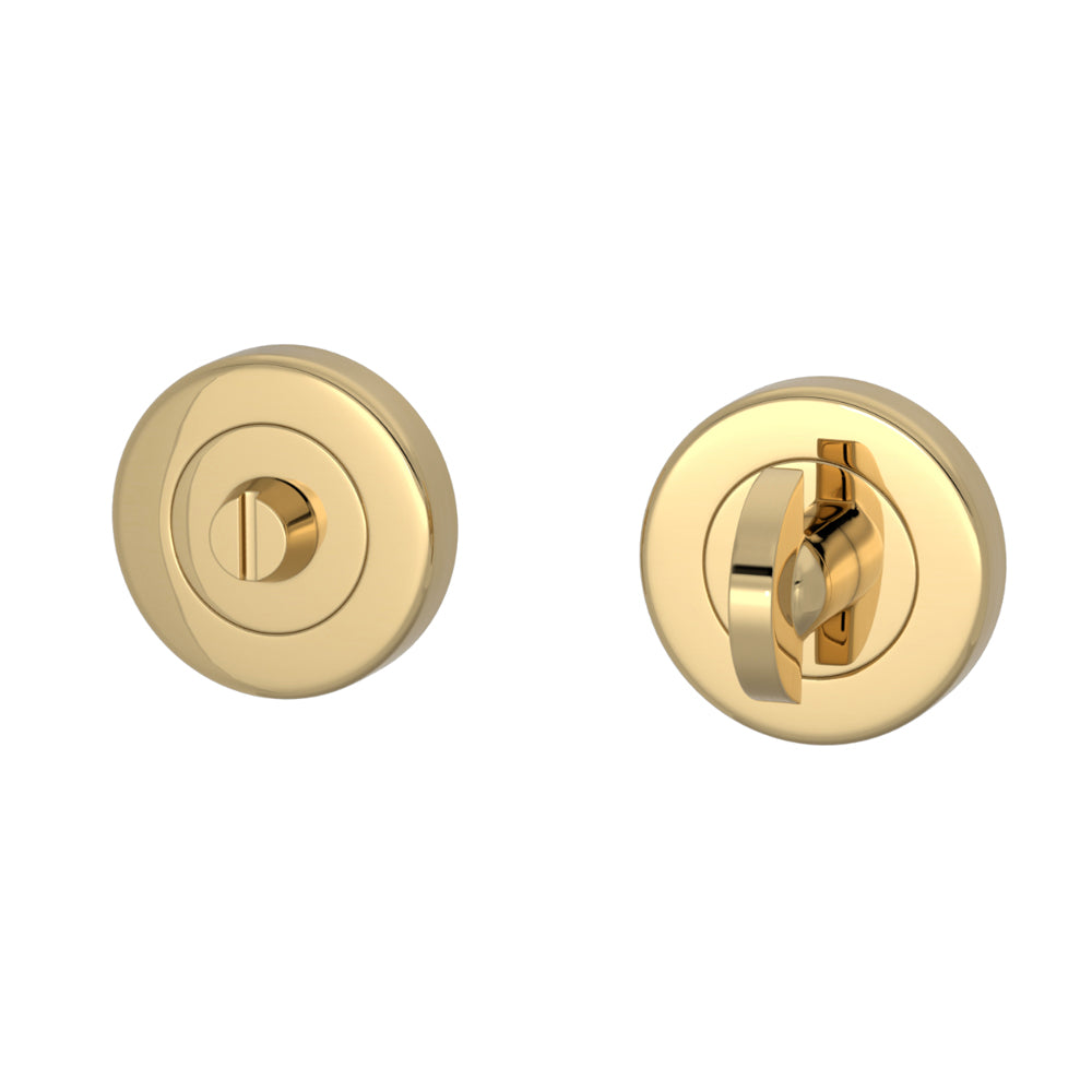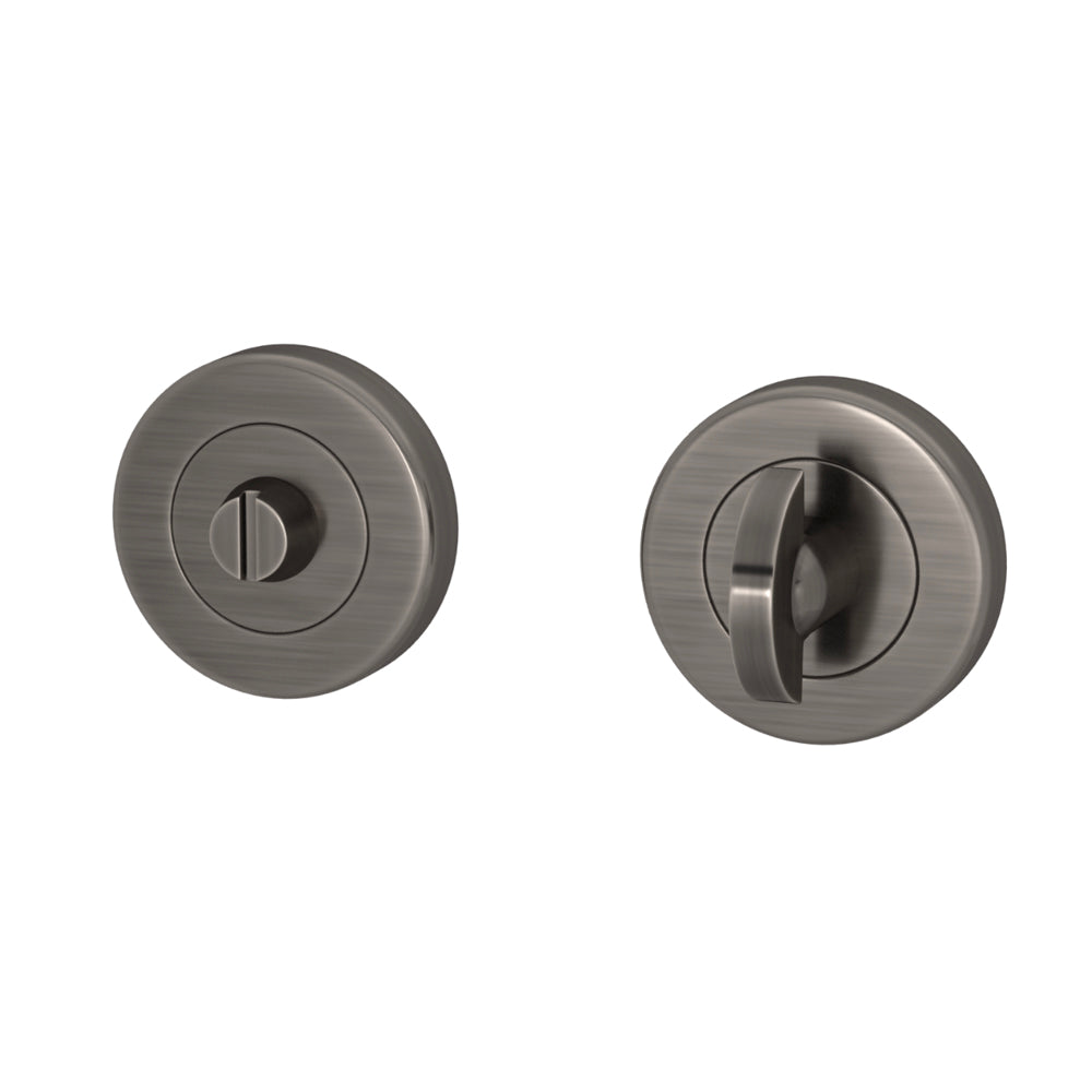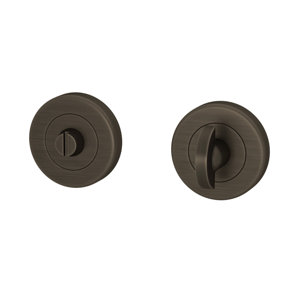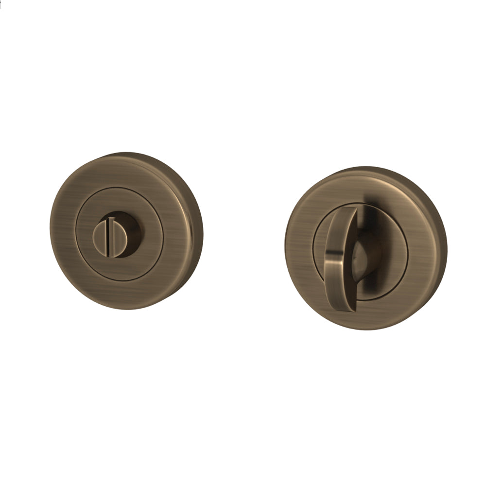 DREHKNOPF-SCHLOSS – HAMMERED HALF MOON TURN & RELEASE SET ROUND – Fein gearbeiteter, halbmondförmiger Dreh- und Entriegelungsknopf aus massivem Messing, passend zu Ihrer Türgriffrosette. Erhältlich für alle Rosetten und somit mit jedem Türgriff kombinierbar, ideal für das Verschliessen von WC-Türen.