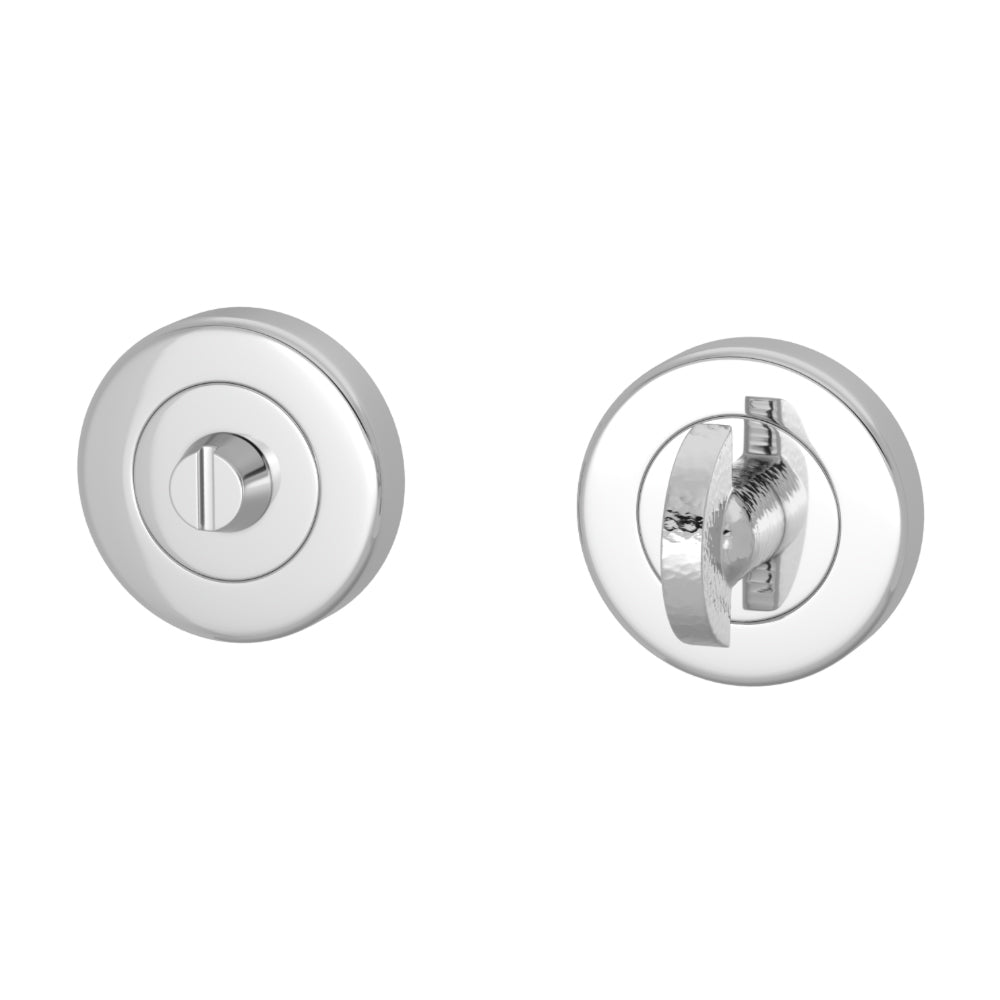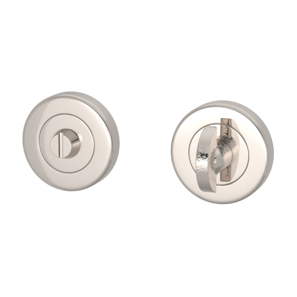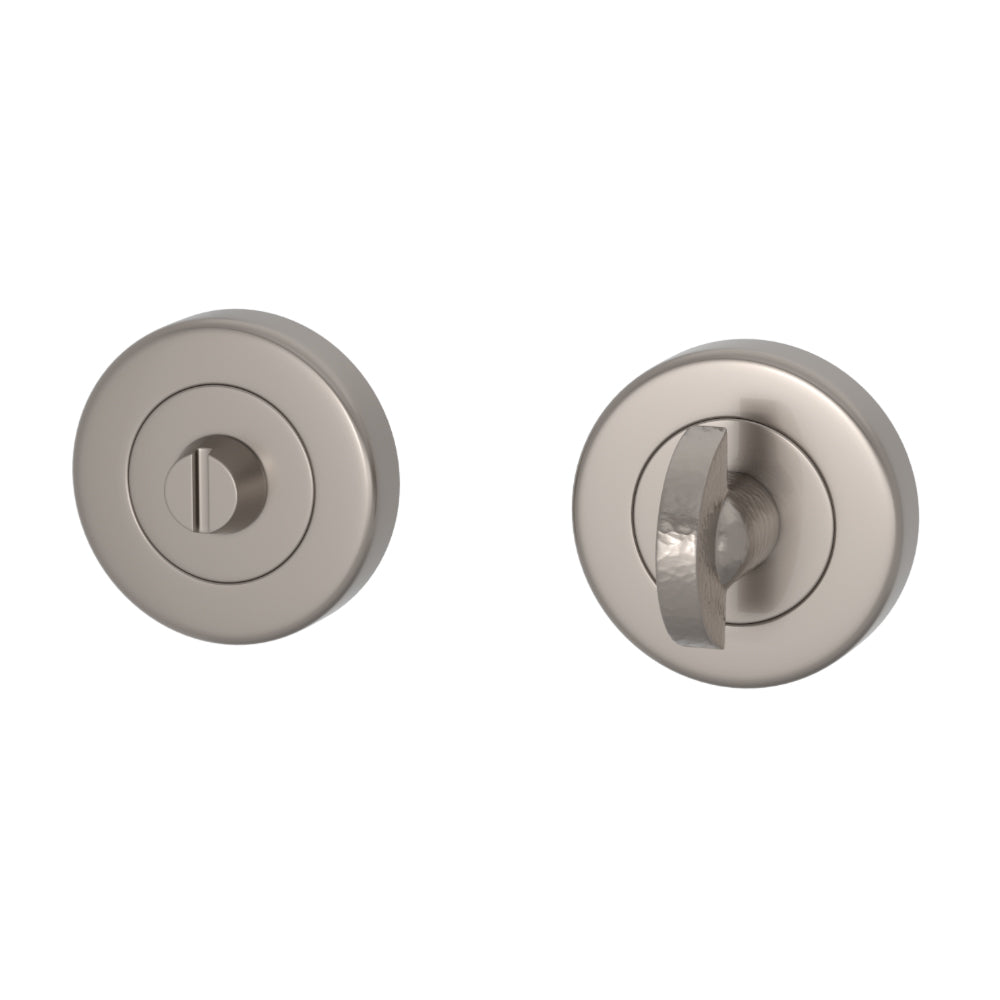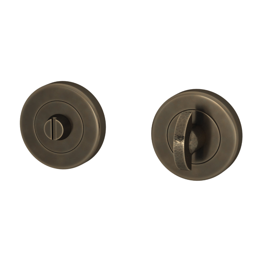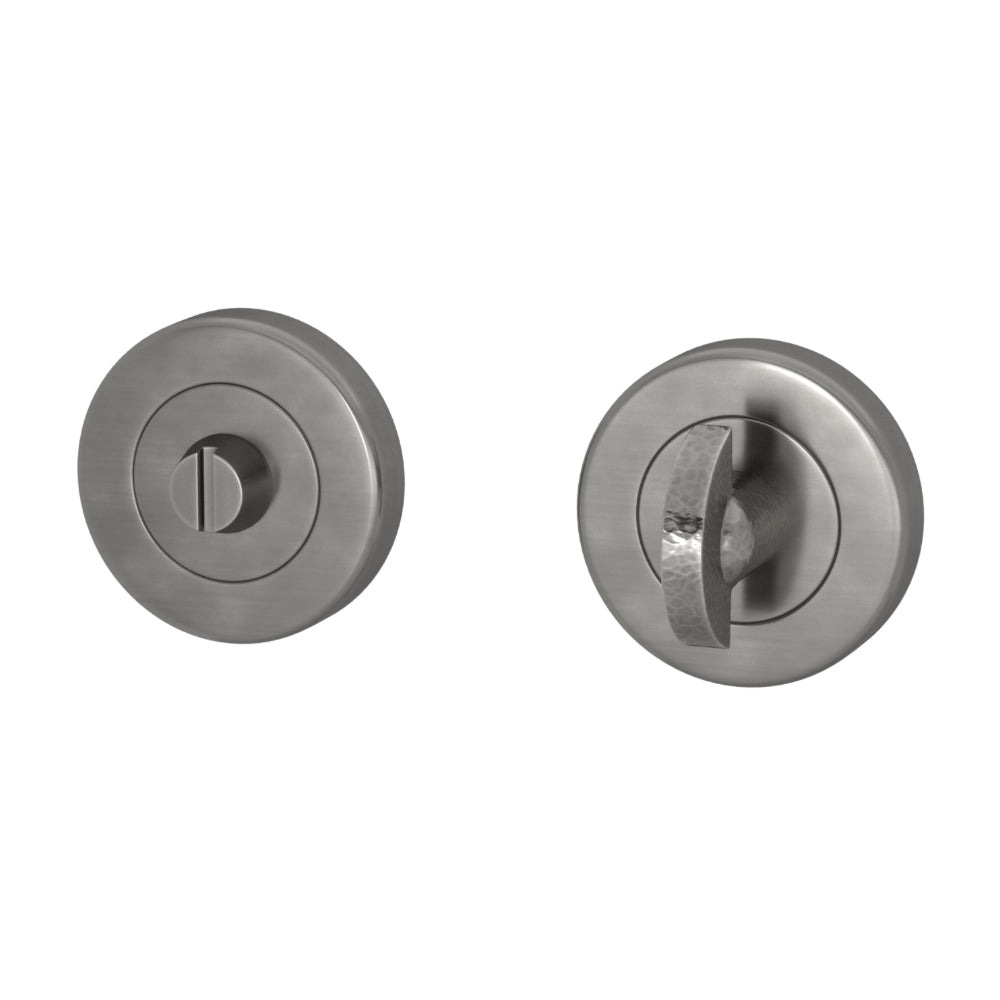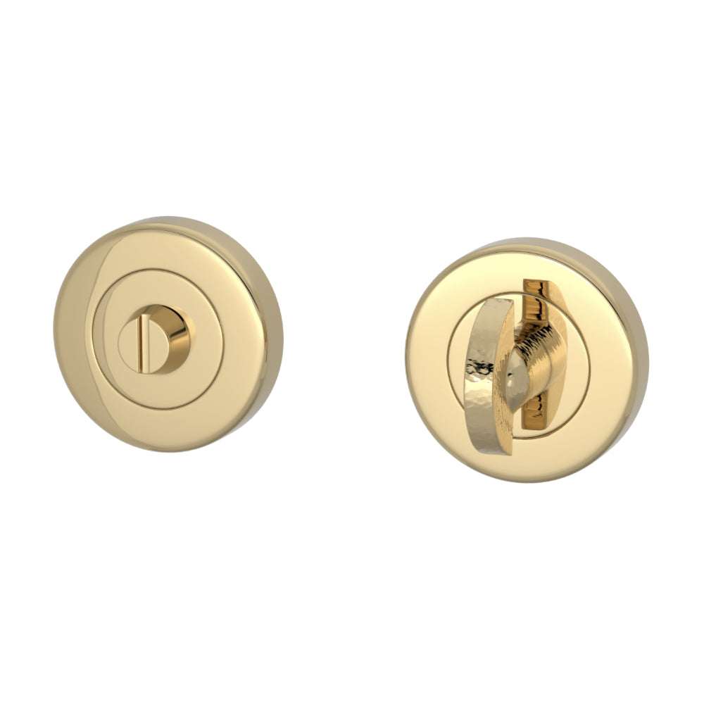 DREHKNOPF-SCHLOSS – HAMMERED HALF MOON TURN & RELEASE SET ROUND – Fein gearbeiteter, halbmondförmiger Dreh- und Entriegelungsknopf aus massivem Messing, passend zu Ihrer Türgriffrosette. Erhältlich für alle Rosetten und somit mit jedem Türgriff kombinierbar.