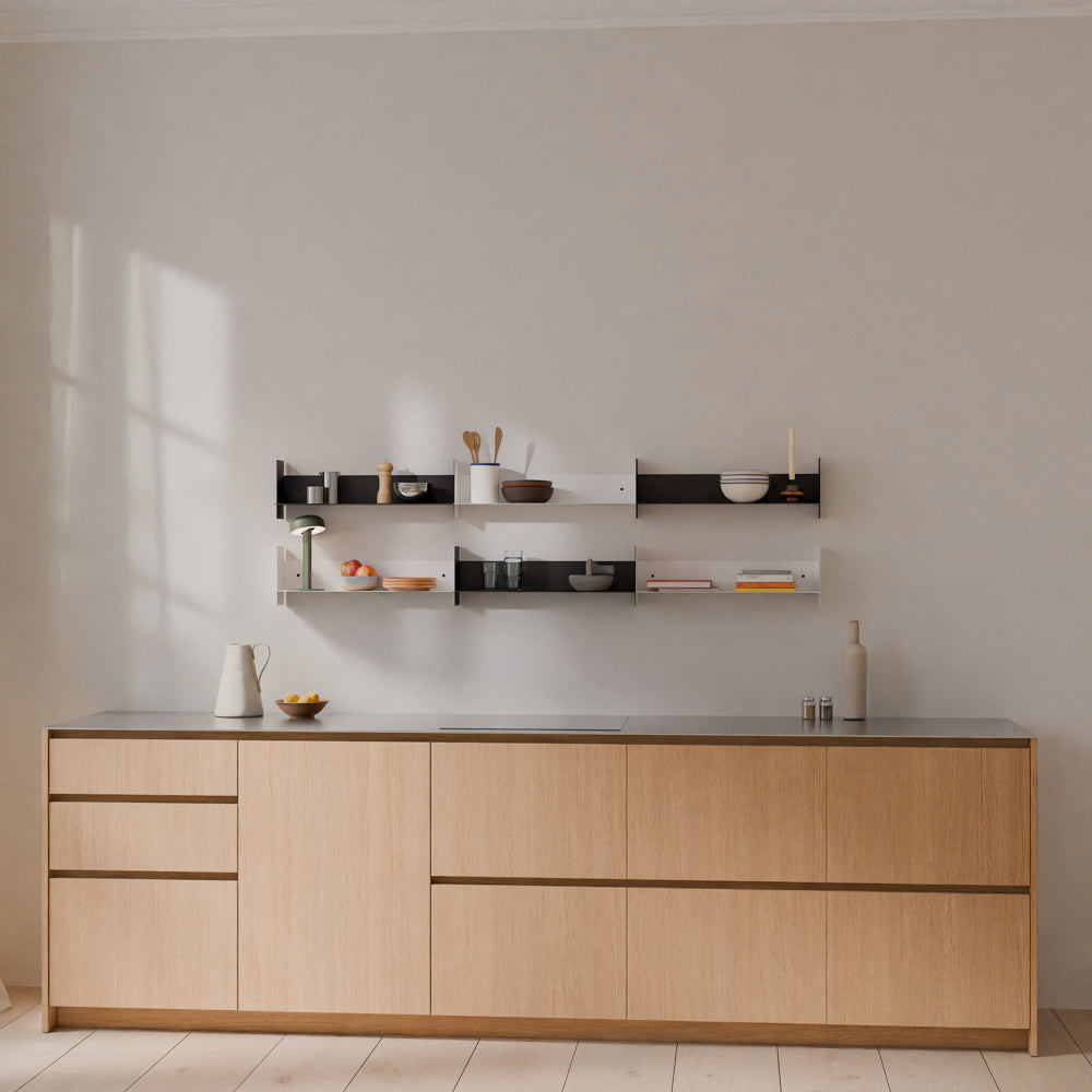 WALL SHELVING OAK TIPTOE 320/270 - (Table de chevet chêne massif / Solid oak bedside table ). This floating, minimal bedside table by TIPTOE combines a board made of solid oak (32 x 27 x 2.5 cm) and a wall bracket. Its minimalist and refined look allows you to place it in the bedroom or a room of your choice, regardless of the style of your interior!