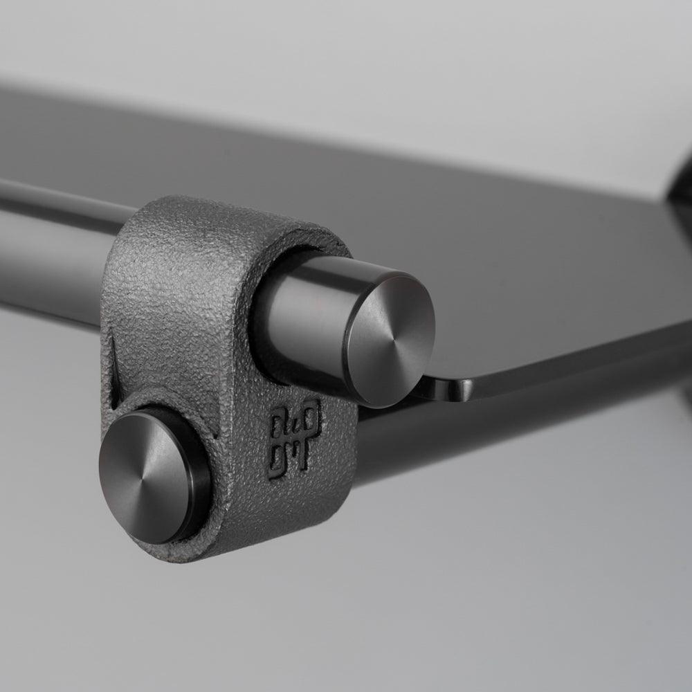 BATHROOM SHELF CAST SMALL / CAST BY BUSTER & PUNCH - A bathroom shelf made from solid stainless steel and finished by hand. This shelf features our signature cast ring, hand polished solid metal rod, solid metal plate shelf and an embossed B+P emblem on the cast element.