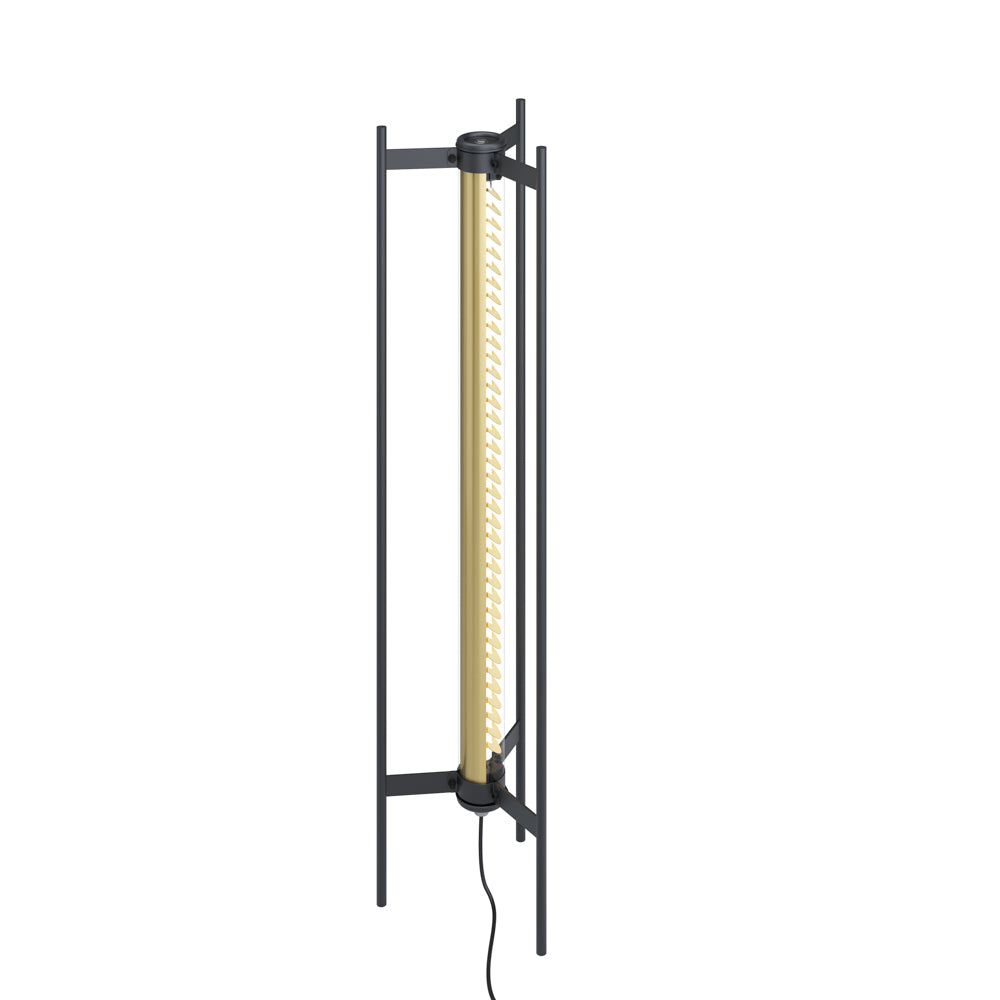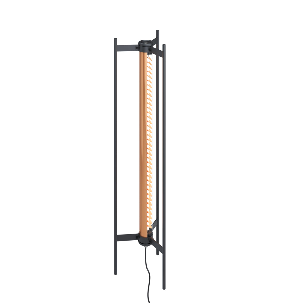 This timeless wall lamp is available in five colors: copper, gold, silver, brass and Betrol anthracite. Its downward sloping lamellae cover the light source and direct it downwards. It is very nicely used vertically as a repetition along a wall in the hallway and in the entrance to the grounds or underground car park. The tube light itself has a protection class of IP68 (waterproof).