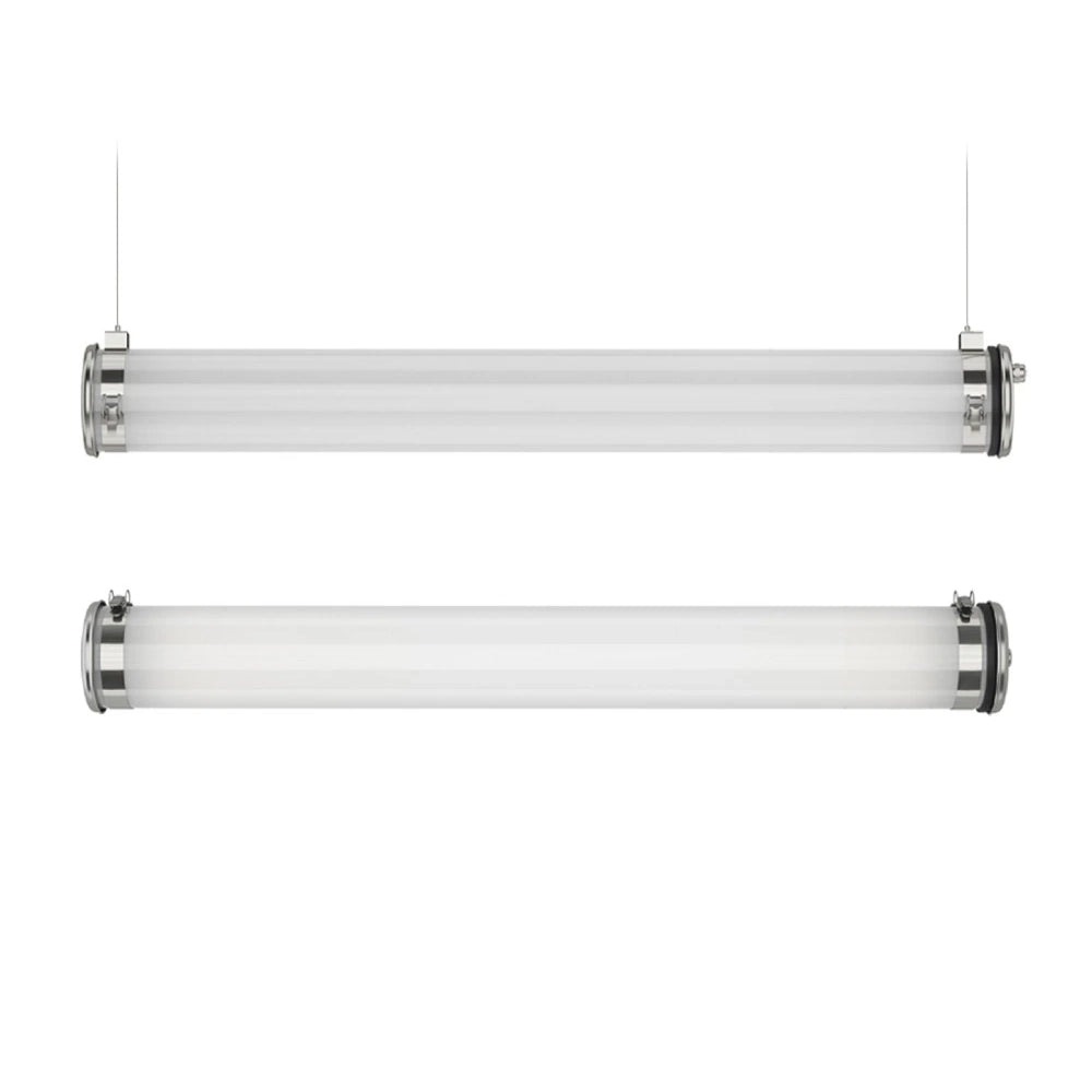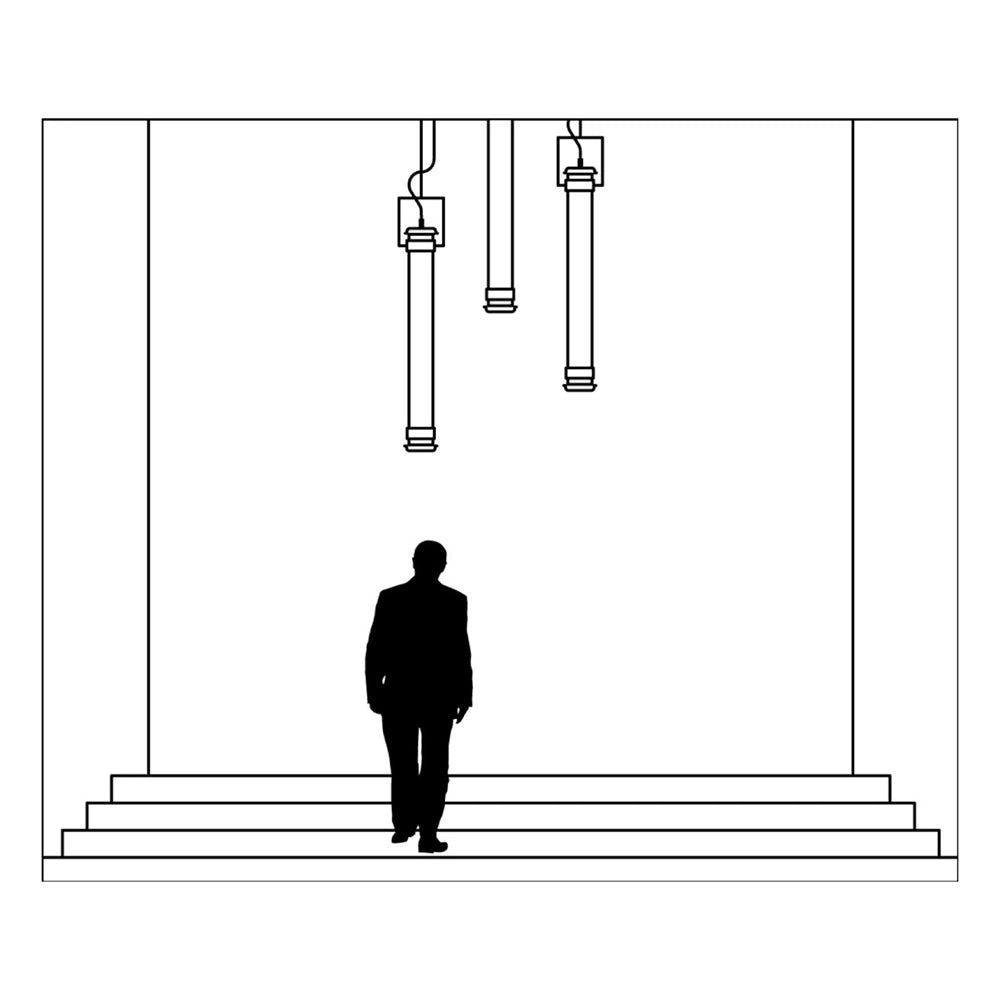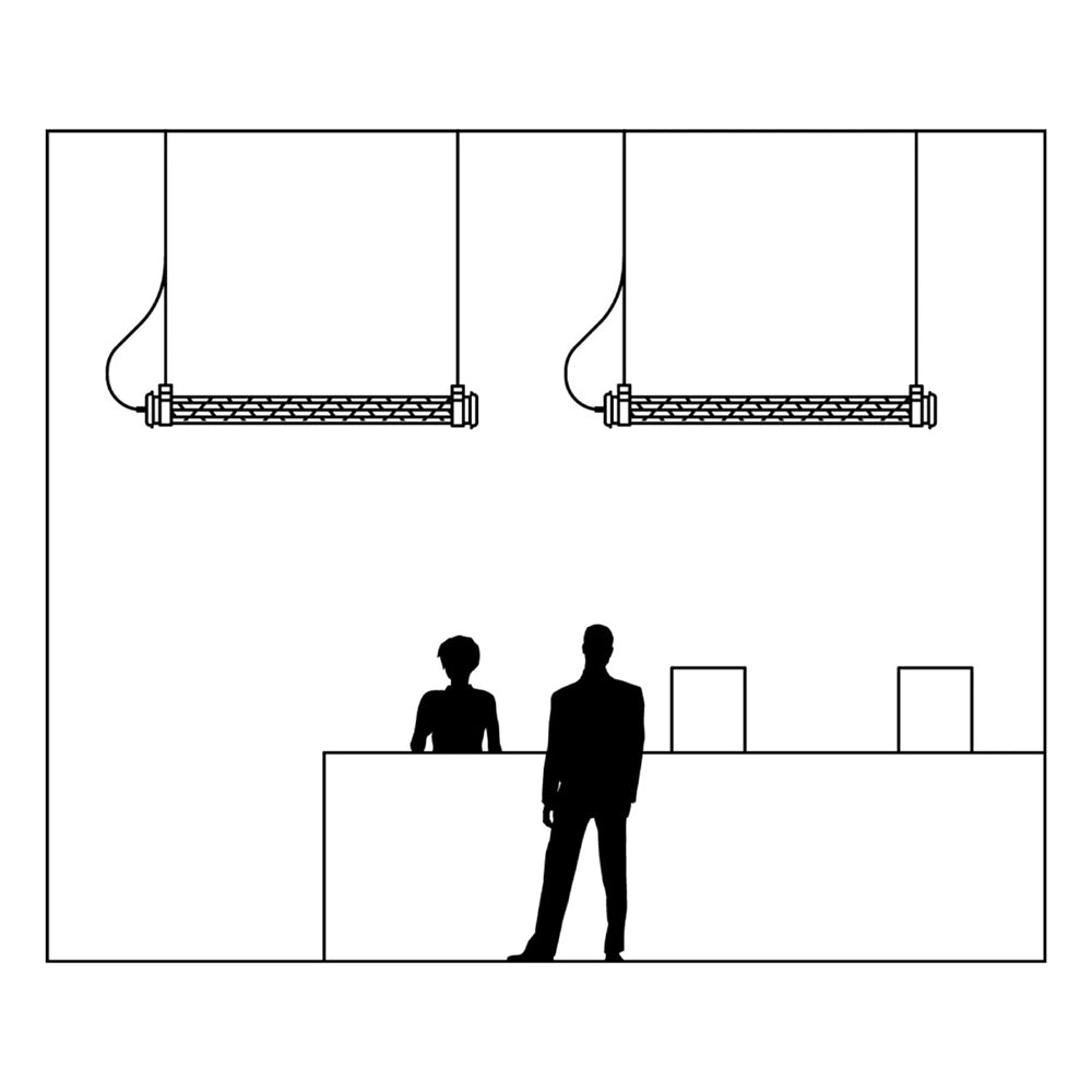 BRUEGHEL TUBE 1618 PRO / TUBE LAMP - Whether hanging or mounted on the ceiling, thanks to its intense and directed light, this LED luminaire is ideal for optimal and precise illumination of horizontal surfaces. The lamellas used prevent glare and offer real visual working comfort. The BRUEGHEL tube light is mainly used in hallways, workplaces or kitchens. The dimmable version offers a variety of lighting situations. Suspended on the supplied steel cables, the lamp gives a feeling of lightness and finesse.
