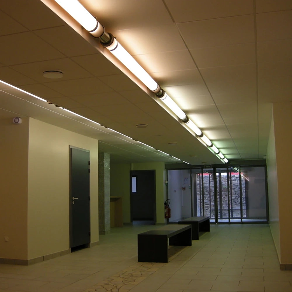 This tube light is often used in offices, workplaces, showrooms, galleries, shops, stairwells, underground garages and corridors. The simple and timeless BRUEGHEL lamp emits glare-free light and envelops the room in a pleasant working atmosphere.