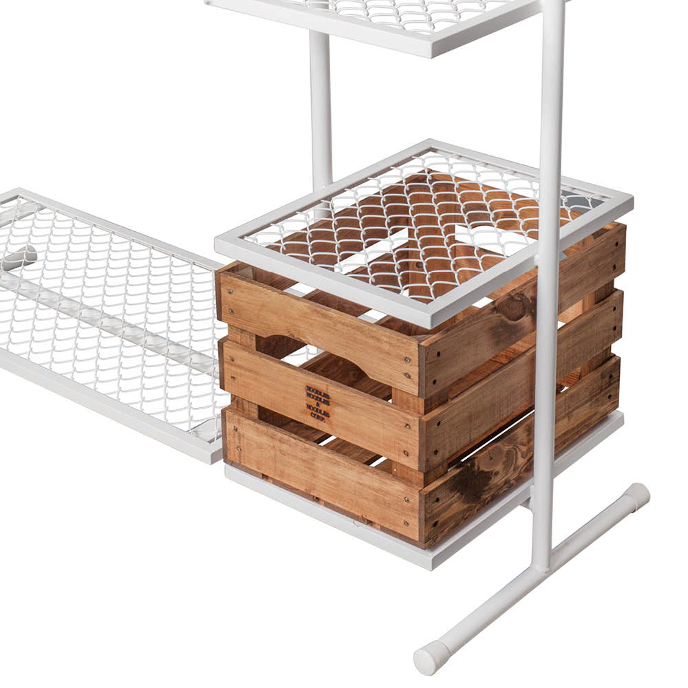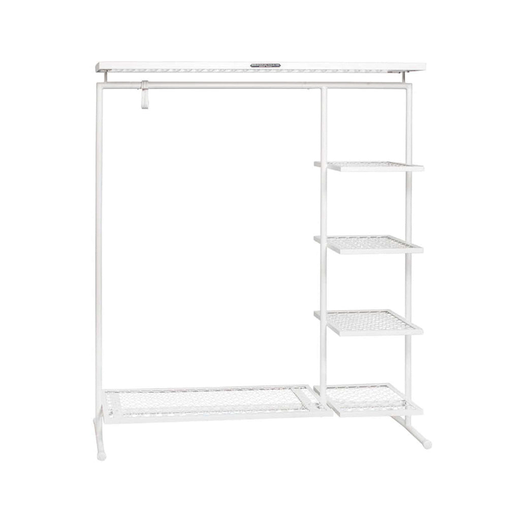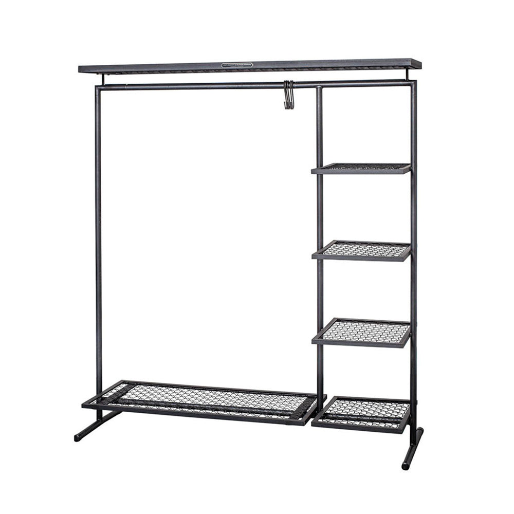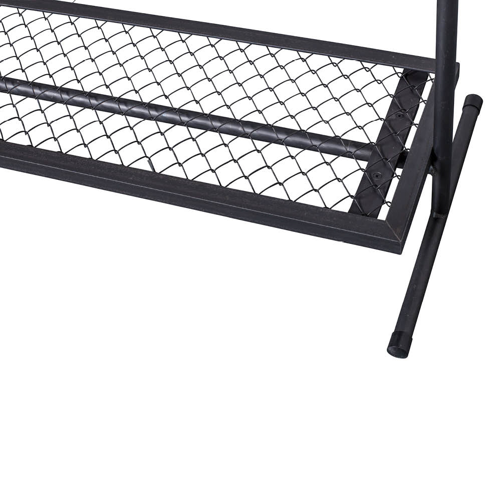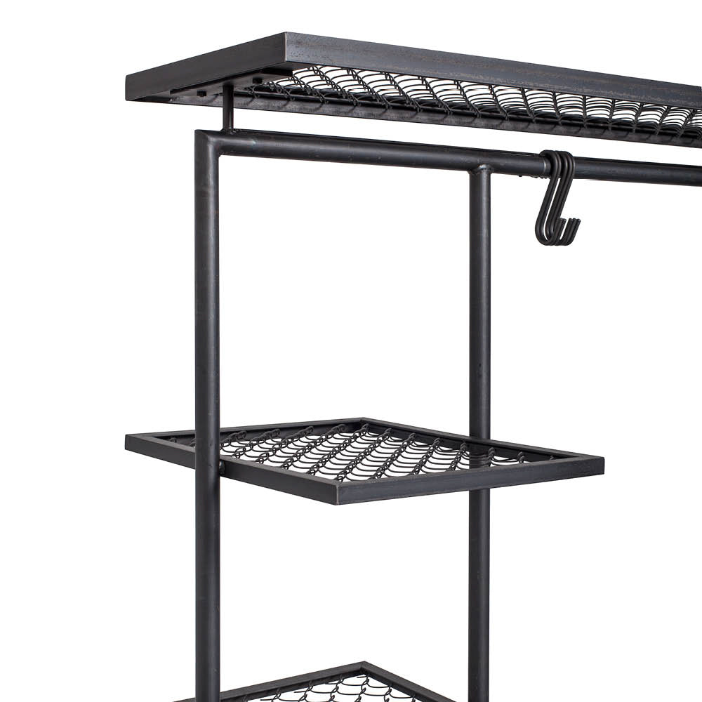 The clothes rack Type 2 offers space for the decorative storage of clothing. It's practical and looks good. The wire mesh shelves define an unmistakable industrial look. The upper shelf is 35 cm deep, depending on the version, 120 or 140 cm wide. The lower shelf is 130 or 110 cm wide and 46 cm deep. In order to be able to hang up the clothing in proper style, it is best to order coat hangers and hooks from our range.
