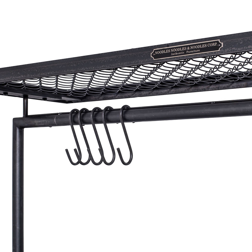ROBUST COAT RACK 2 WITH MESH - by Noodles Noodles. Handmade from metal and wire mesh. Casual, industrial style. The clothes rack is equally suitable for living and working areas as well as for the presentation of goods. Optionally in dark natural steel or in pure white, 140 and 120 cm width, fixed or on castors.