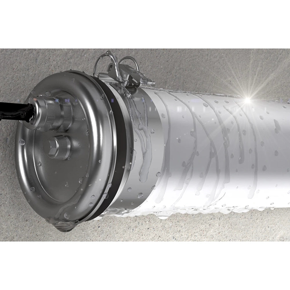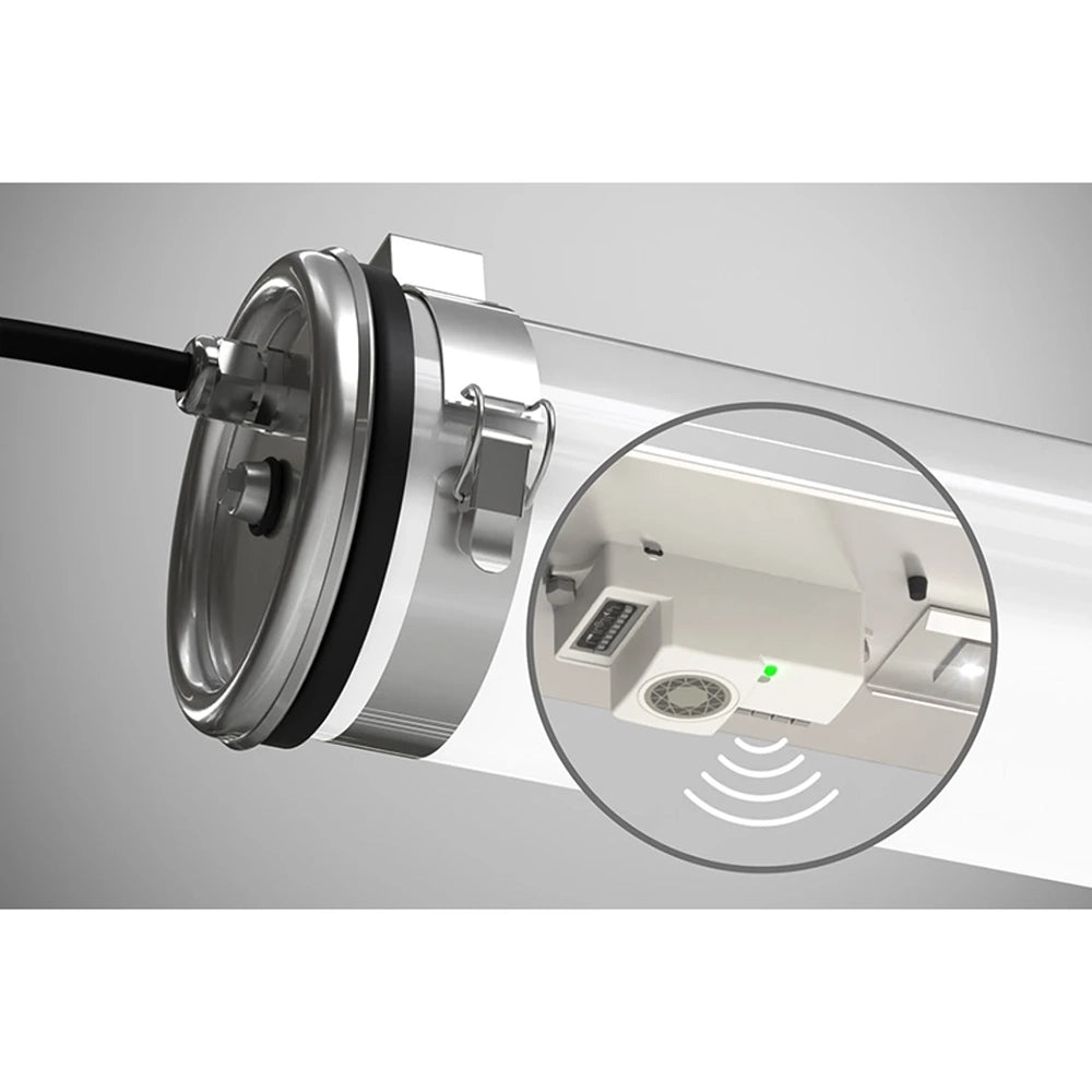 BRUEGHEL TUBE 1618 PRO / TUBE LAMP - Whether hanging or mounted on the ceiling, thanks to its intense and directed light, this LED luminaire is ideal for optimal and precise illumination of horizontal surfaces. The lamellas used prevent glare and offer real visual working comfort. The BRUEGHEL tube light is mainly used in hallways, workplaces or kitchens. The dimmable version offers a variety of lighting situations. Suspended on the supplied steel cables, the lamp gives a feeling of lightness and finesse.