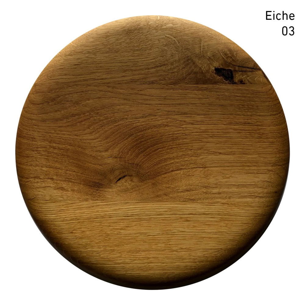 • Sitzfläche: Ø 305mm, 27mm, Massivholz (Eiche natur, Schwarznuss)