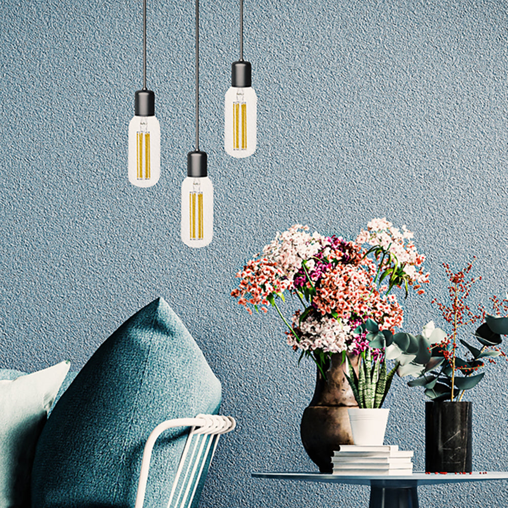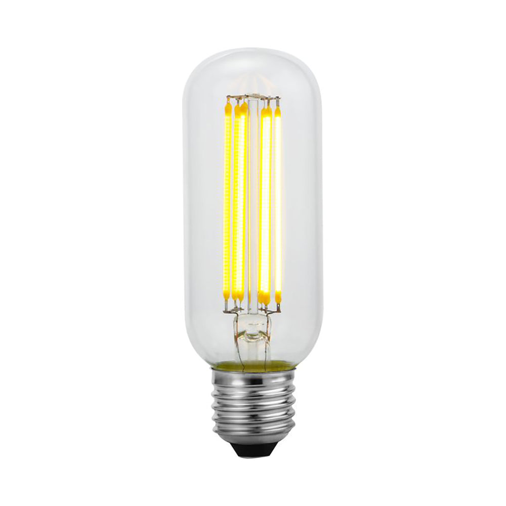 Ampoule LED tubulaire E27 6,5 W T45/130 – alliant la forme tubulaire classique et la technologie LED moderne, cette ampoule au design unique en verre est idéale pour créer des lignes lumineuses décoratives. Elle s'harmonise parfaitement avec les lampes simples (douille en porcelaine et câble textile). Un remplacement idéal pour les ampoules halogènes.