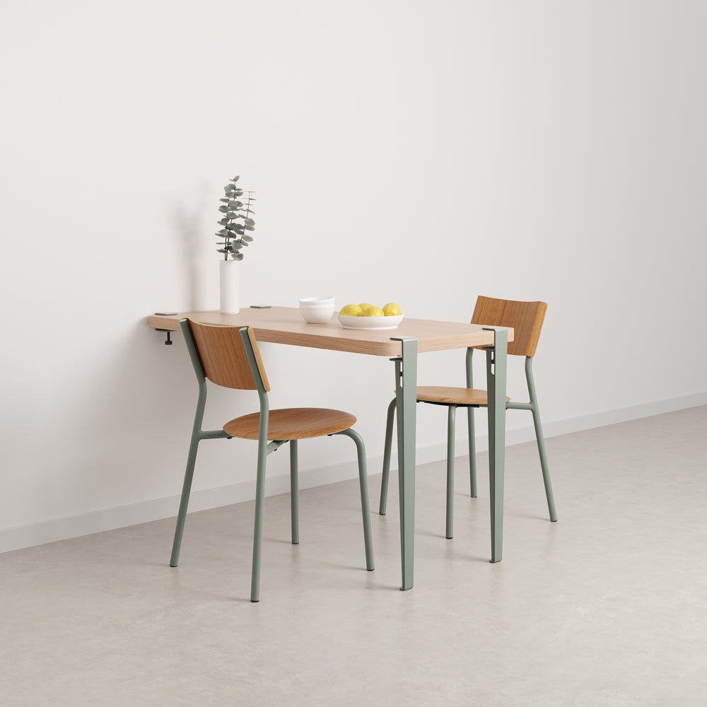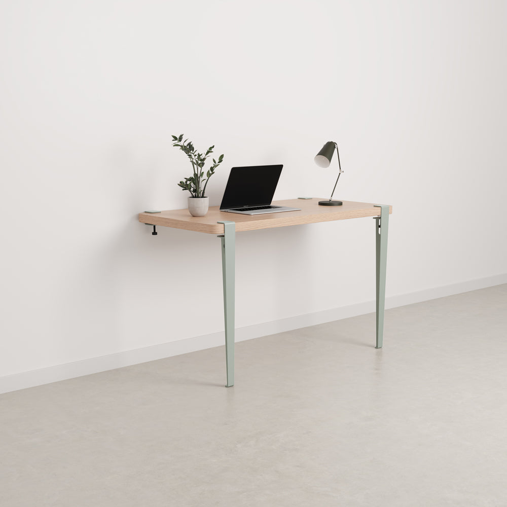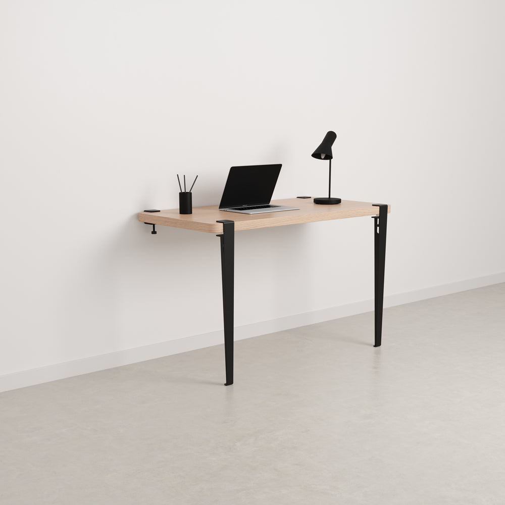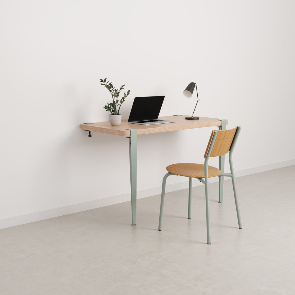 Le panneau en chêne est fabriqué en France et le bois est issu de forêts 100% gérées durablement (label PEFC). Les pieds de 110 cm et le support mural peuvent être montés ou démontés en quelques minutes grâce aux vis de serrage et rangés pour gagner de la place.