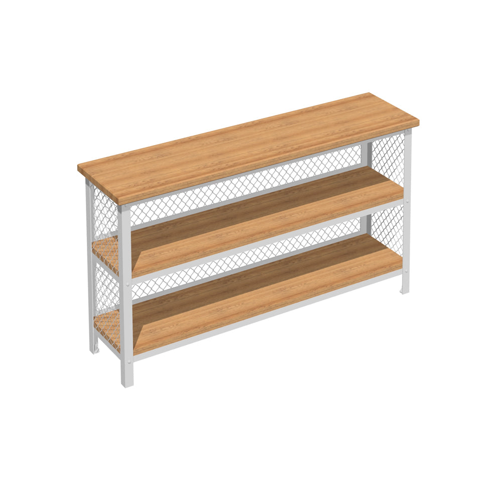 Étagère de cuisine artisanale en acier angulaire, équipée de deux planchers en pin massif scellés avec une huile naturelle colorée de haute qualité. Disponible en largeur 50 cm, 100 cm et 150 cm. Le corps mesure 55 cm de profondeur. L'étagère est livrée sans plan de travail, qui peut être commandé séparément dans la boutique. L'étagère peut être utilisée comme module autonome ou comme sous-structure pour un élément de cuisine. Il est fait d'une seule pièce et possède des pieds réglables. Disponible en acier naturel authentique avec une finition émaillée transparente ou blanche. Le bois de pin provient d'une sylviculture durable et est scellé avec une huile organique colorée.