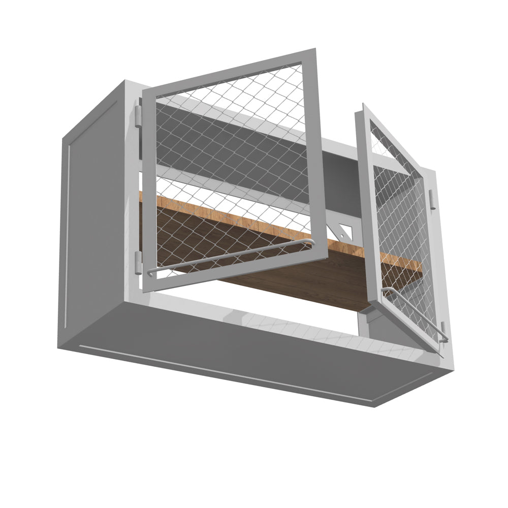 Armoire de cuisine (armoire de base de cuisine) en acier. Pour encastrer un évier, une plaque de cuisson ou simplement pour une utilisation avec un plan de travail. Le corps mesure 55 cm de profondeur. L'armoire peut être combinée avec d'autres armoires de cuisine, des étagères de cuisine, l'armoire à tiroirs et des appareils électriques en tant que kitchenette. Les meubles placés côte à côte peuvent être combinés pour former un ensemble avec un plan de travail continu. La hauteur du corps en métal est de 87 cm. Support ferme même sur des sols irréguliers grâce aux pieds réglables en hauteur.