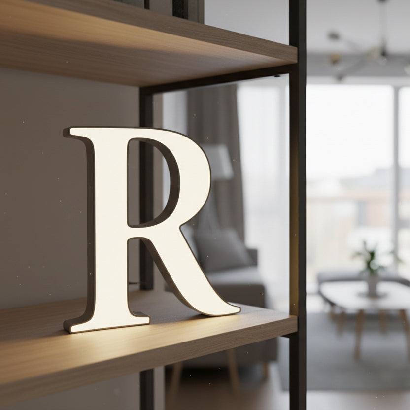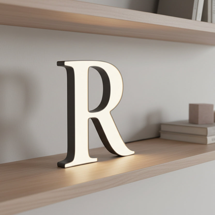 ALPHABET LEUCHT-LETTER / GROSSBUCHSTABEN – Elegante LED-Leuchtbuchstaben für den Innenbereich, hergestellt in der Schweiz. Träume von einem Leuchtbuchstaben? Oft scheitert es daran, dass der gewünschte Buchstabe selten in Gebäudebeschriftungen vorkommt oder dir die verfügbare Schrift nicht gefällt. Unsere Alphabet-Serie bietet perfekte Grundformen – egal, ob serifenlos oder serifenbetont – und lässt dich jeden Buchstaben deiner Botschaft individuell gestalten. Ergänzend zur Reihe findest du auch passende Leuchtzahlen.