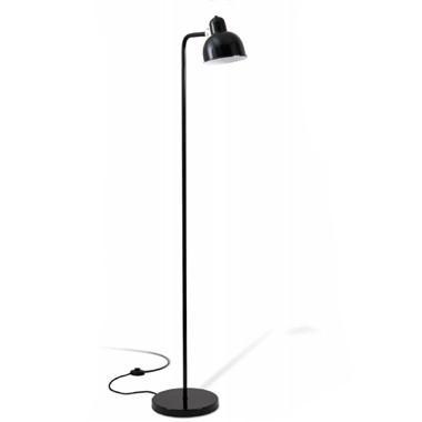 DÜSSELDORF – Standleuchte aus veredeltem Stahlblech, aussen Tiefschwarz, innen Reinweiss, Gelenkteile vernickelt, Stahlrohr Ø 16mm, stahlblechverkleideter Gusseisenfuss Ø 250mm, inkl. schwarzes 1,5 m Textilkabel.