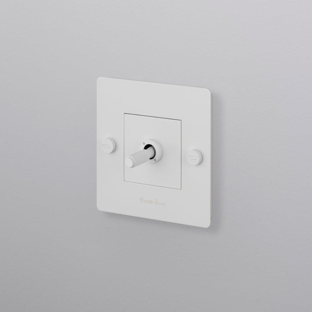 Der Kippschalter verfügt über eine leicht gebürstete flache Platte, die mit unseren charakteristischen Münzschrauben aus massivem Stahl befestigt ist.