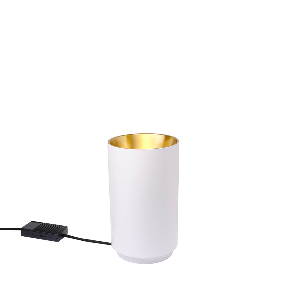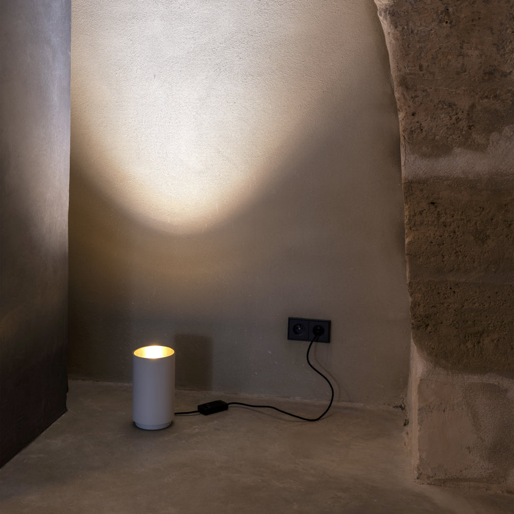 TOBO F140 TISCHLEUCHTE / BODENLEUCHTE – Tischlampe / Stehlampe in mattweisser Ausführung von DCWéditions. Diese einfache Lösung mit integriertem Dimmer entlastet den Raum, indem sie eine warme, fast theatralische Lichtatmosphäre bietet.