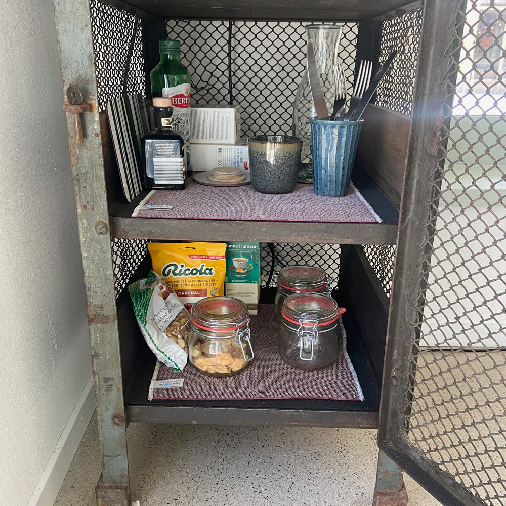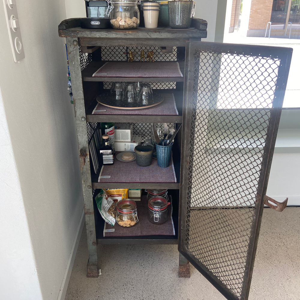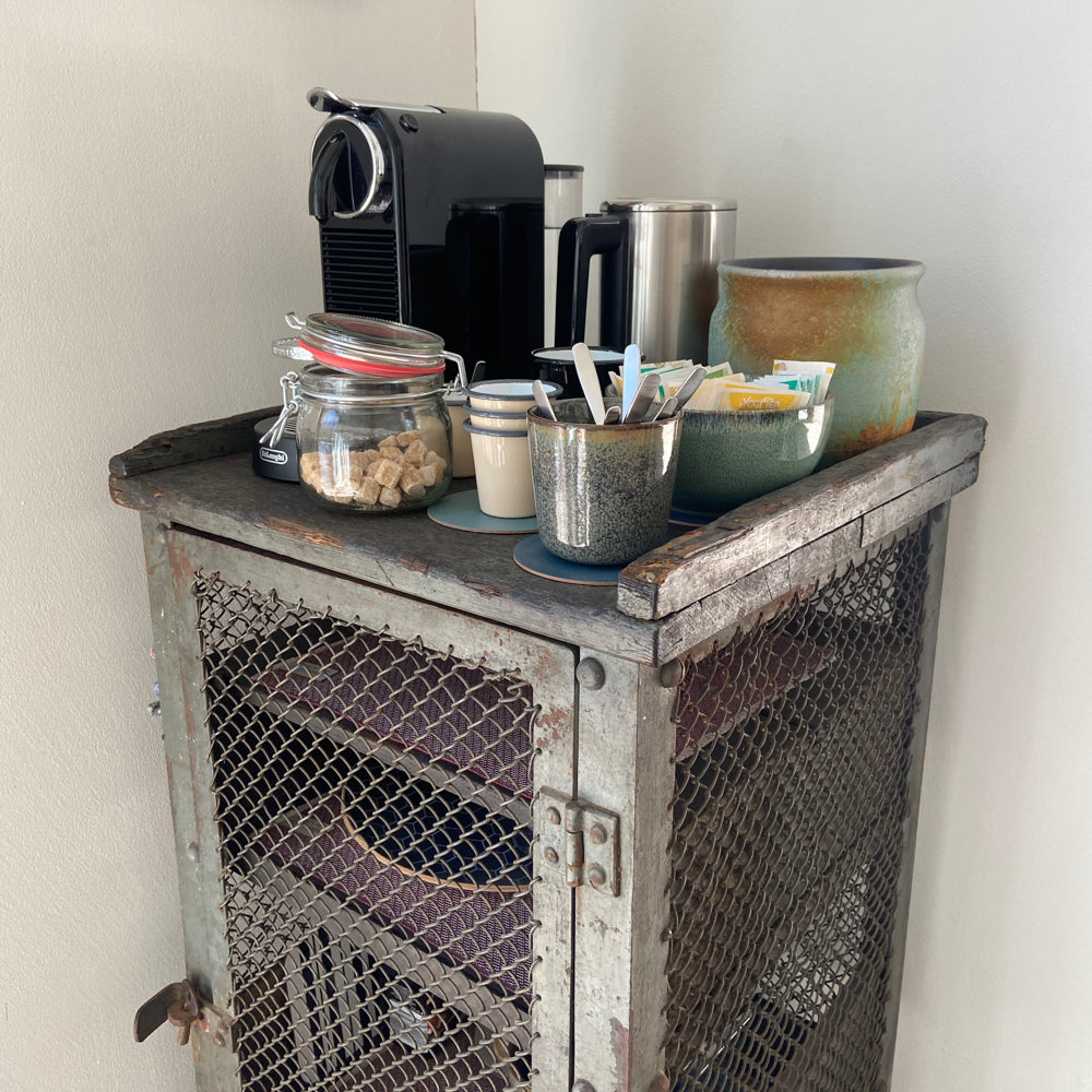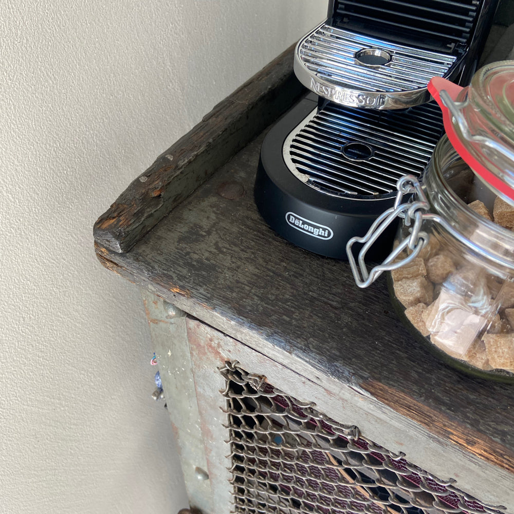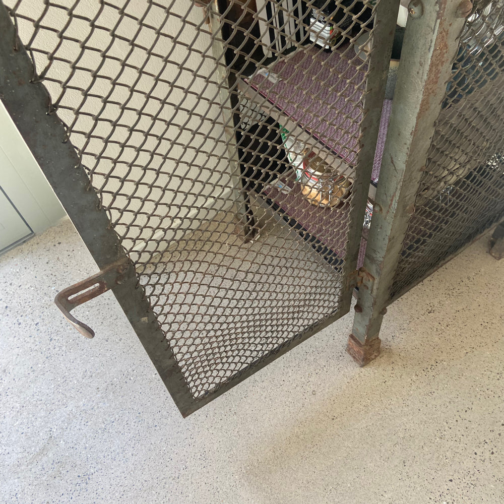 VINTAGE INDUSTRIAL MESH REGAL - sehr gut erhaltene Vintage, Metall Sideboard mit Maschendraht aus einer Werkstatt, militärgrün, Marke unbekannt.