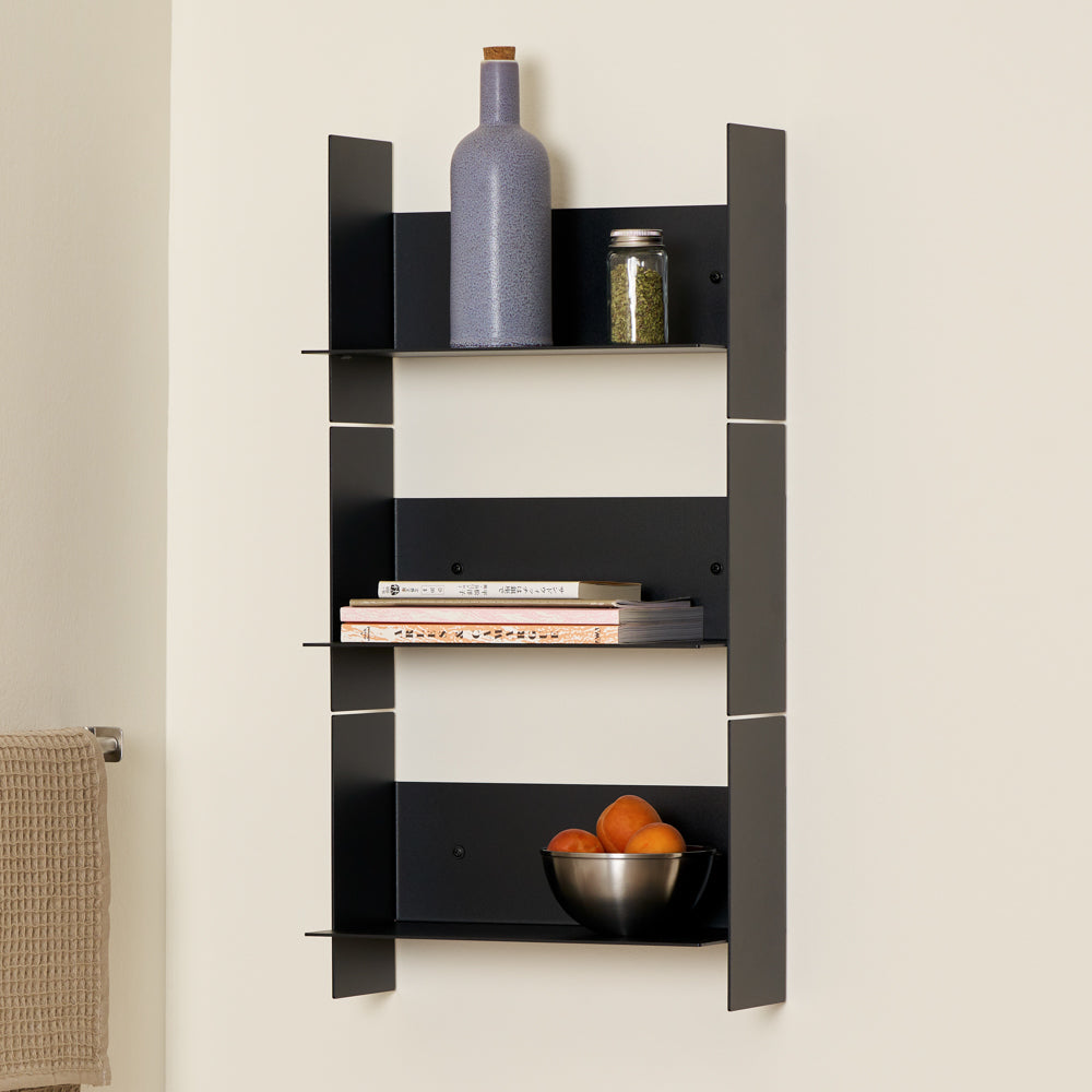 3ER-SET WANDREGAL PLI AUS STAHL 300/150 VON TIPTOE – (Etagère murale PLI en acier / PLI steel wall shelf). Die PLI-Wandregale aus gebogenem Stahl sind in verschiedenen Grössen und Farben erhältlich und ermöglichen eine Vielzahl von Regalkonfigurationen, die sich perfekt für jeden Raum eignen.